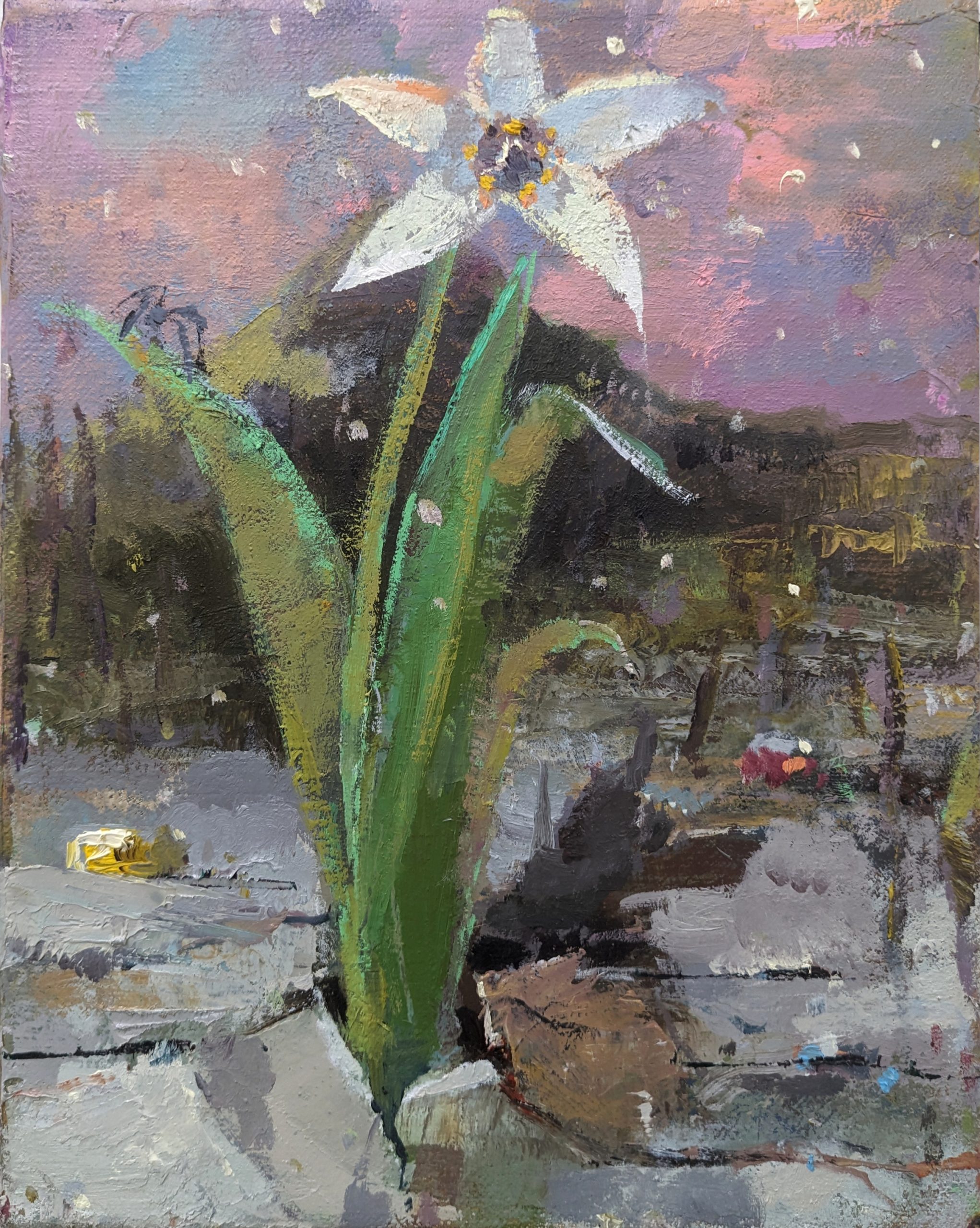 Fritz Bornstück, Albino Enzian, 2024, oil on canvas, 30 x 24 cm