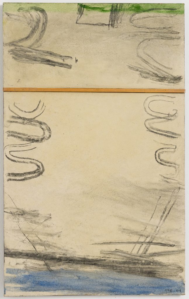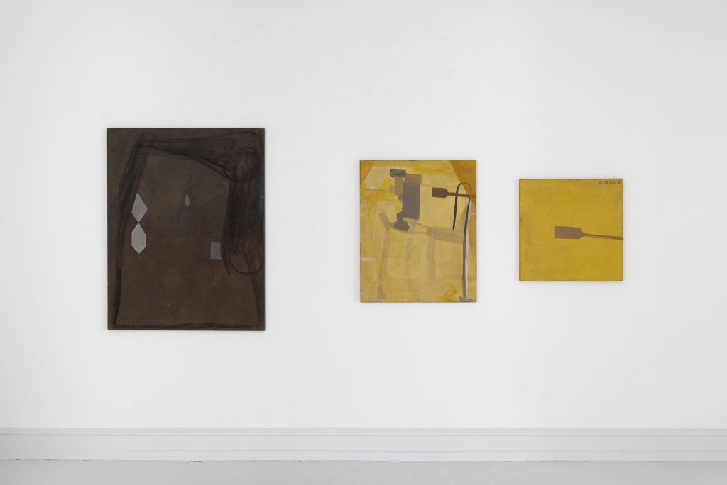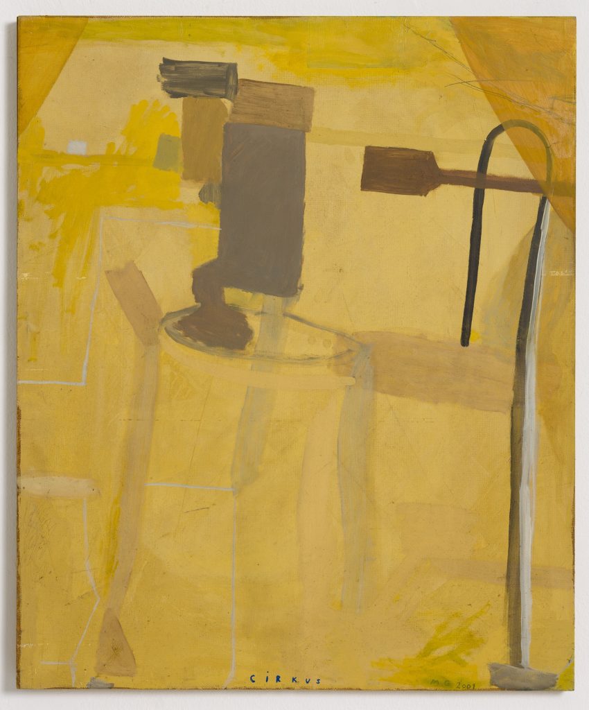 Mogens Gissel er født i 1941og debuterede som kunstner i 1964. Inden da var han uddannet reklametegner og tog afsted på sin Velo Solex-knallert, kørte gennem Europa for blandt andet at besøge Prado-museet i Madrid og slå en sløjfe forbi forbilledet Paul Cézannes berømte bjergmotiv Montagne Sainte-Victoire i Provence. Har man været på egnen ved mesterens atelier forstår man, at det er lidt af en præstation at blive ved det samme motiv i årevis. Paul Cézannes arbejde med gentagelsen kom til at betyde et nybrud i kunsten, der kunne arbejdes serielt og lys og maleteknik forandredes selvom motivet ikke rokkede sig en tøddel. Den erfaring lå siden latent hos Mogens Gissel. Han havde indoptaget landskaber og motiver i sig og kunne male abstrakt ud af fantasien fordi lærredet, malepladen og tubefarven viste ham vejen til nye billeder. Selvom han fulgte med Cirkus Benneweis rundt til byerne i provinsen og malede cirkusmotiver i sine tidlige år, ligesom han malede fra Thylejren og Christiania, var det stadig en slags frie kompositioner omkring et emne. Motivet behøver ikke at være genkendeligt, blot kan det ske at jordfarverne umbra, grønne og brune og beige giver et praj om at vi er i et særligt rum i dette eller hint maleri. Landskab eller interiør. Opstilling eller noget helt fjerde. Okker, sort, grå i mange nuancer danner et lavmælt billedsprog som Mogens Gissel forstår at jonglere på plads på billedfladen. De beskedne jordfarver er en meddelelse i sig selv. Måske om en slags indre landskab hvis ikke et ydre. Måske handler det om en ydmyghed overfor verden.