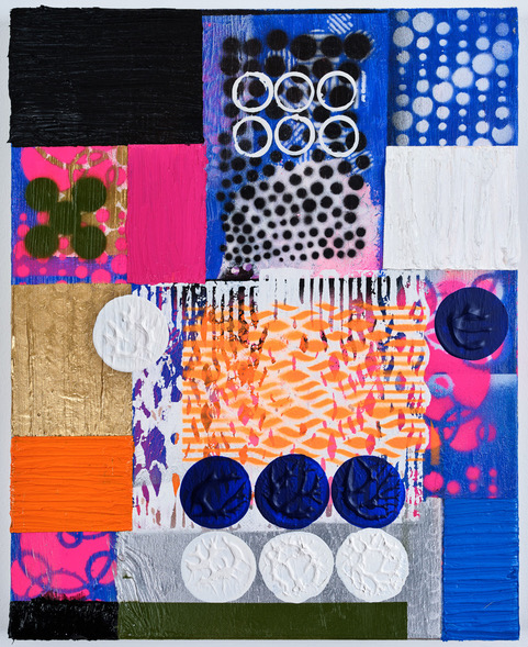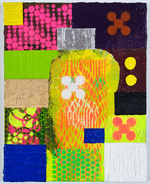Tjorg Douglas Beer, A2, 2024, Acrylic paint, oil paint, spray paint, lacquer on canvas, 50 x 40 cm