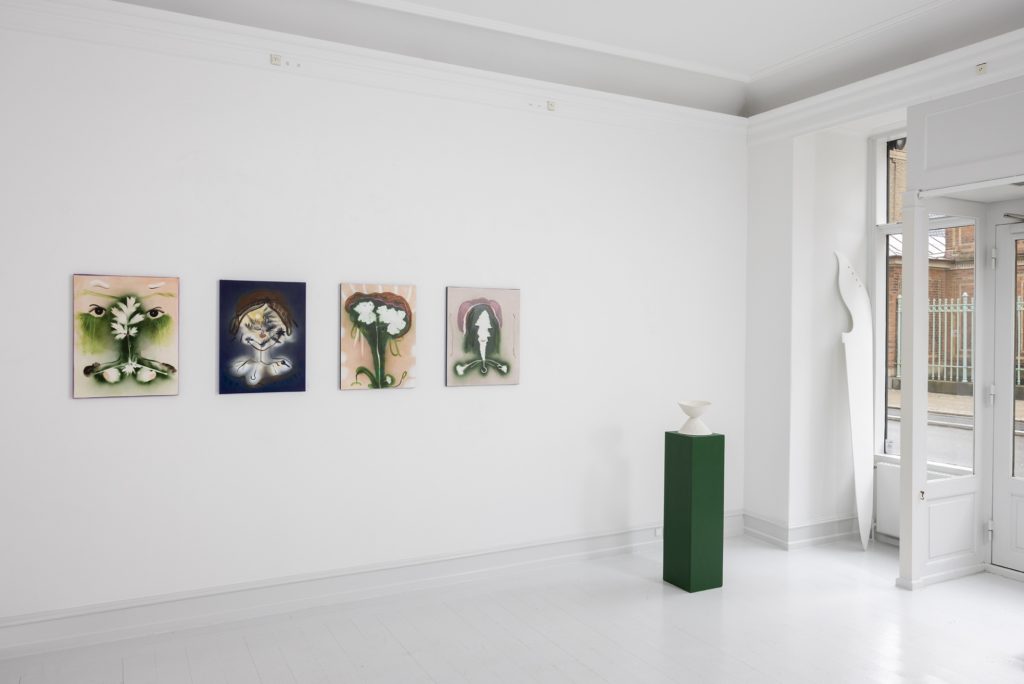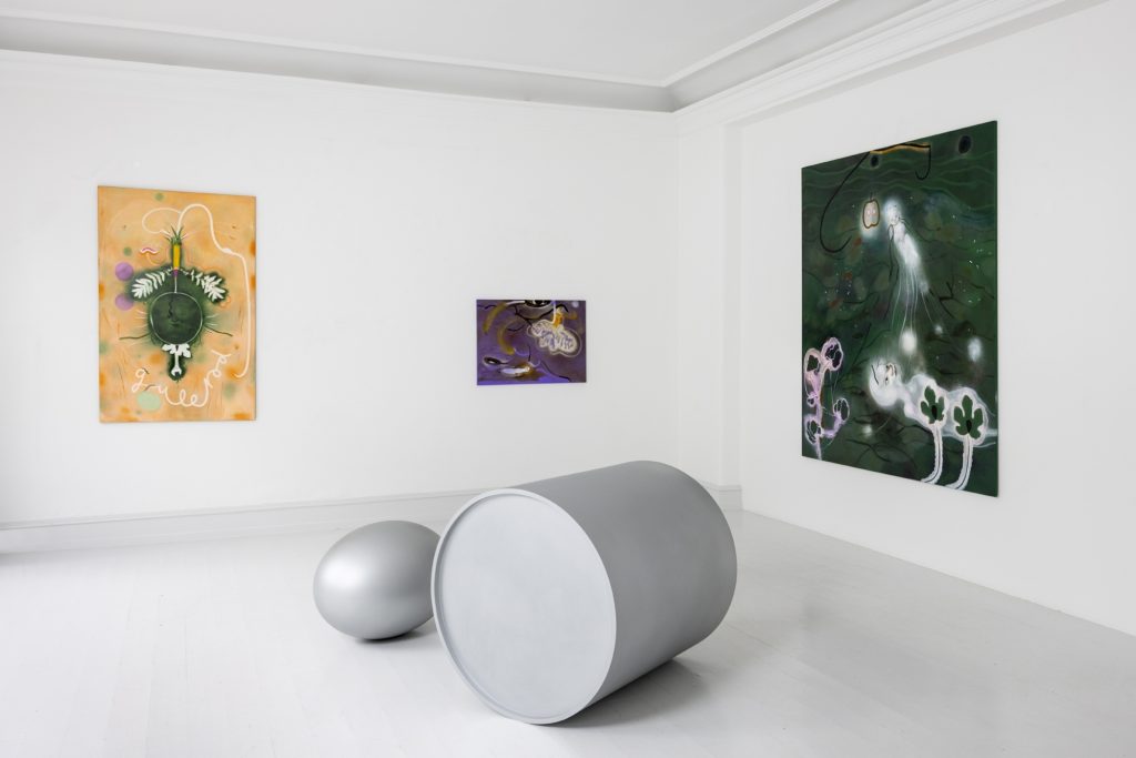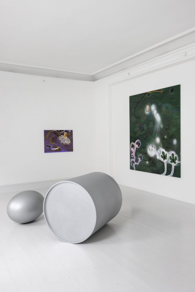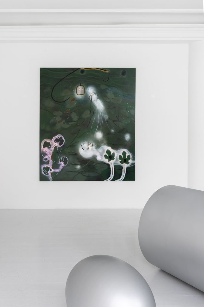 Galerie Mikael Andersen would like to welcome you to the opening of You are me, I am you, an exhibition featuring new works by Kathrine Ærtebjerg together with a sculpture by Sophia Kalkau, on Thursday 7 April 2022, 17:00 – 19:00. In the exhibition You are me, I am you the artist shows new paintings, watercolors, monotypes, and sculptures. The experience of the exhibition is colored by the sound piece Self Worth. The lyrics of the sound piece and its overall mood is melancholic and points to how inner and outer values can be measured up against each other. The sound piece is by the band Lystrophia which the artist forms part of.